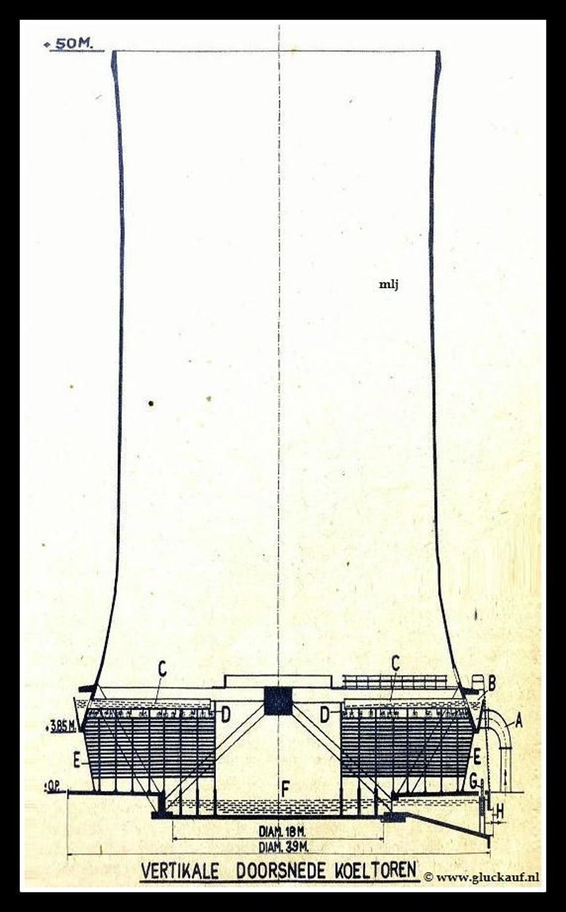 Foto van de "van Iterson" koeltorens van de Stn. Emma, de foto is genomen in de jaren vijftig.© Vision./www.gluckauf.nl