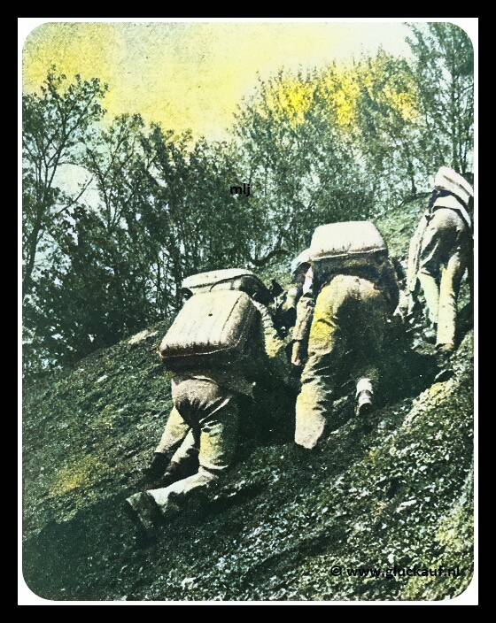 Bij het vervoer langs de helling , door los gesteente wordt de ploeg gehard tegen transportmogelijkheden , die zich ook ondergronds kunnen voordoen . De foto is uit 1949.