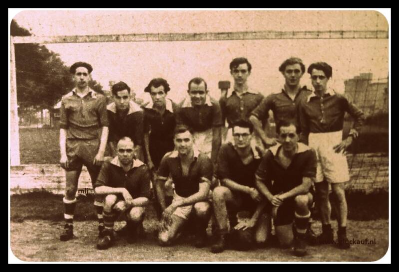 De maalkogels ( zomer voetbal team) van de maalcentrale van stm. Maurits 1947. © Cals/www.gluckauf.nl
