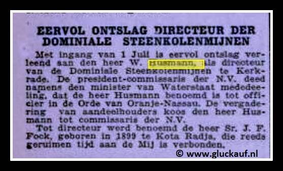 ir. Theo Wilhelm Husmann was van 1906 t/m 1932 directeur van de Domaniale Mijn in Kerkrade. Hij werd in 1932 opgevolgd door de heer Fock.