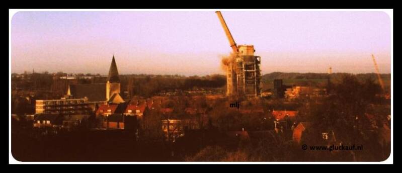 Op 8 december 1987 tussen drie uur en vijf minuten voor half vier, werden de 3 voormalige Mijngebouwen met behulp van dynamiet gesloopt. Er werd ruim vijftig kg dynamiet gebruikt voor de drie gebouwen. De schoorsteen 67 meter, die ging als eerste, daarna de onderlinge gebouw van 38 meter, daarna was de beurt aan de voormalige ketelhuis van 45 meter.