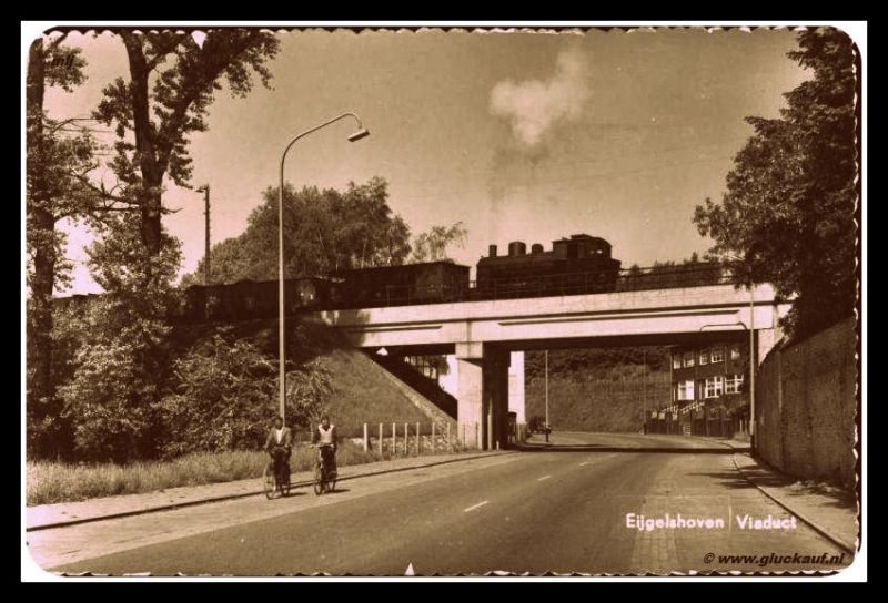 Foto kaart uit de jaren 1930. Een benzinelocomotief ondergronds van de Mijn Laura.