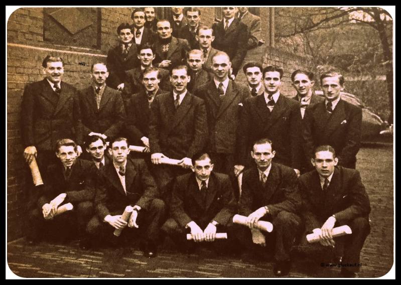 Houwer J. Heynsdijk (l) en hulphouwer H. Fernengel (m) leveren hun pungel in. Bij de J. Veltman (r) inname baas op de Mijn Laura. © www.gluckauf.nl