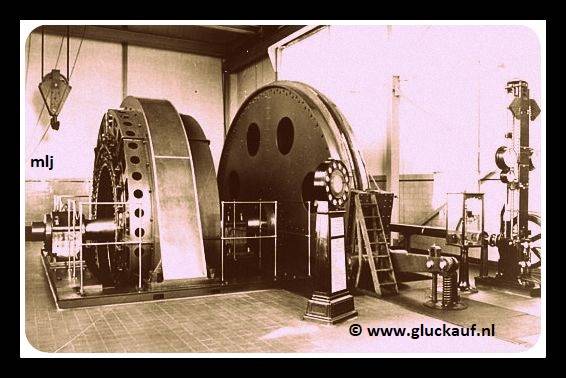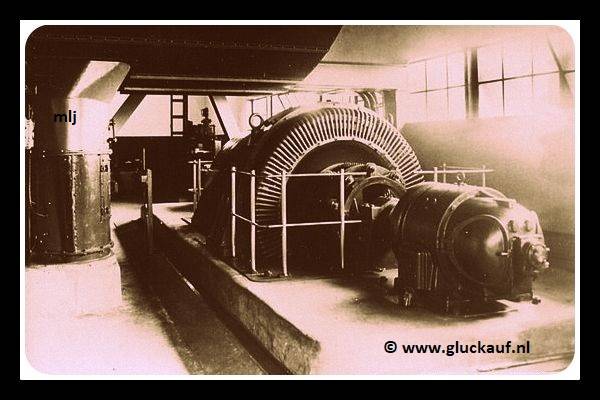 Foto uit 1935. Omvormer Ruimte voor de ophaalmachine van schacht Hendrik van de Mijn Laura. © Visser / www.gluckauf.nl