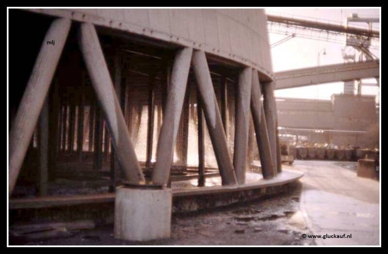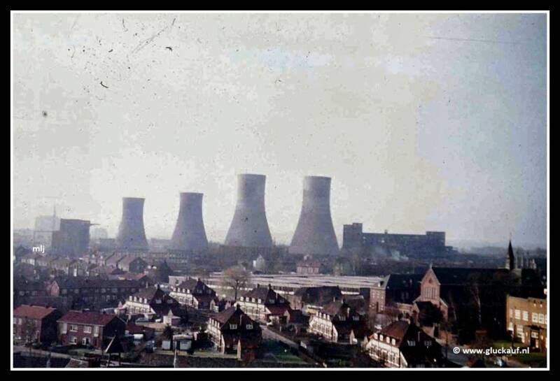Deze foto is genomen vanaf de Parallelweg van de toen nog 3 koeltorens en 2 schachten van de O.N. 1. © www.gluckauf.nl