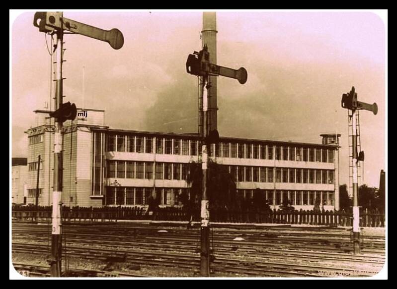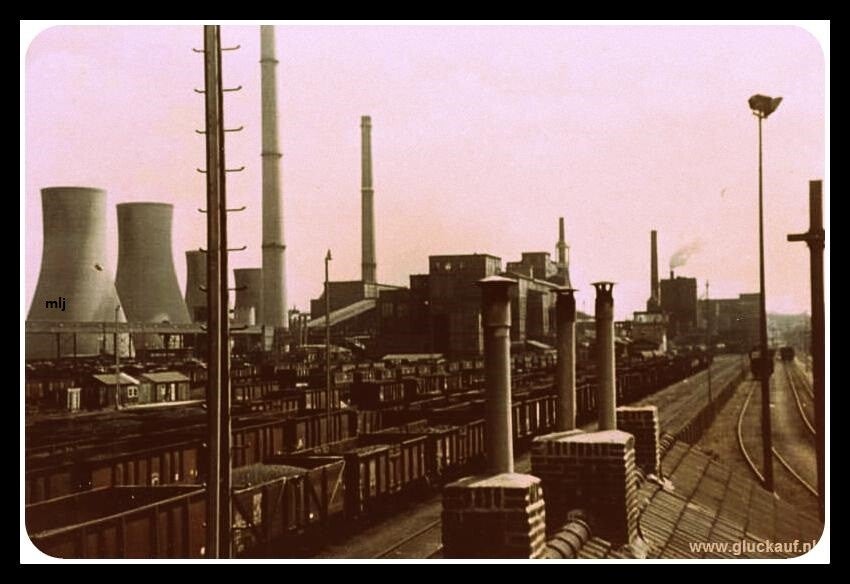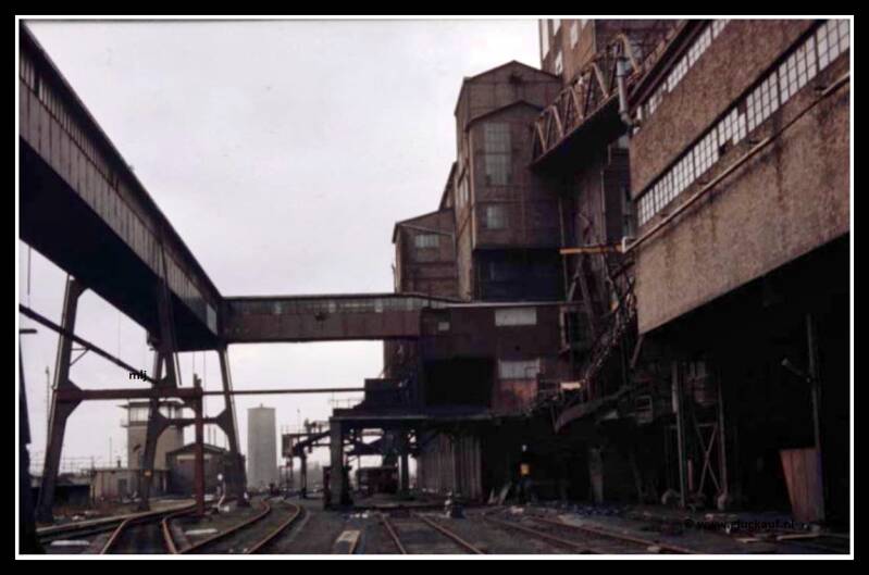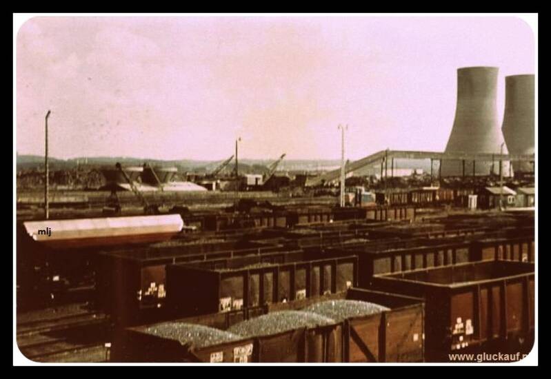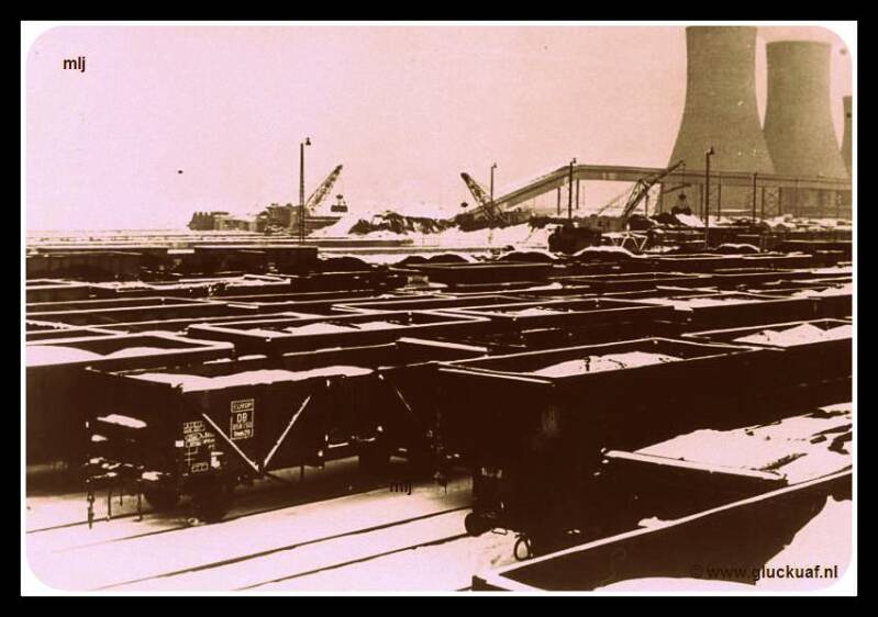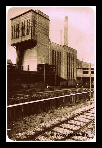 Rangeerterrein van de O.N.1. Rechts twee koeltorens. Foto is uit 1961.