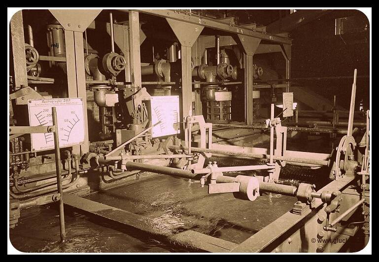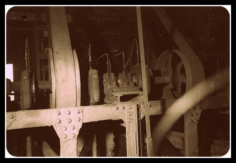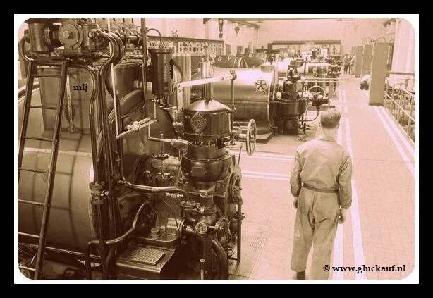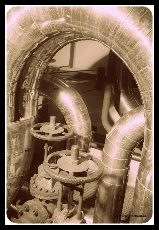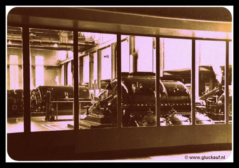 Ketelhuis van de O.N.1, olie gedreven pompen van de bediening van het mechanisme van de storkbadcock ketels in het ketelhuis 4, uit 1938. © D. Visser / www.gluckauf.nl