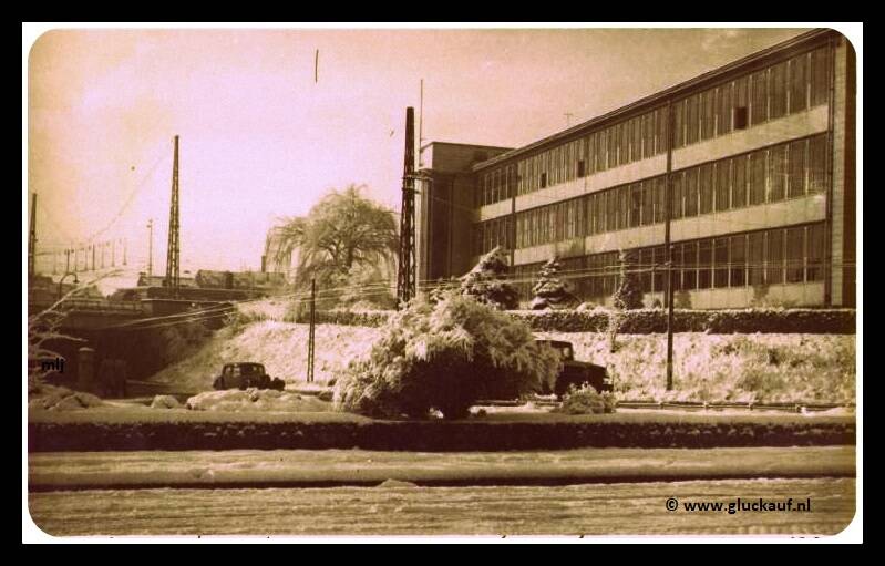 Achterzijde van de briketen fabriek van Oranje Nassau Mijn I Heerlen uit 1952-1953.