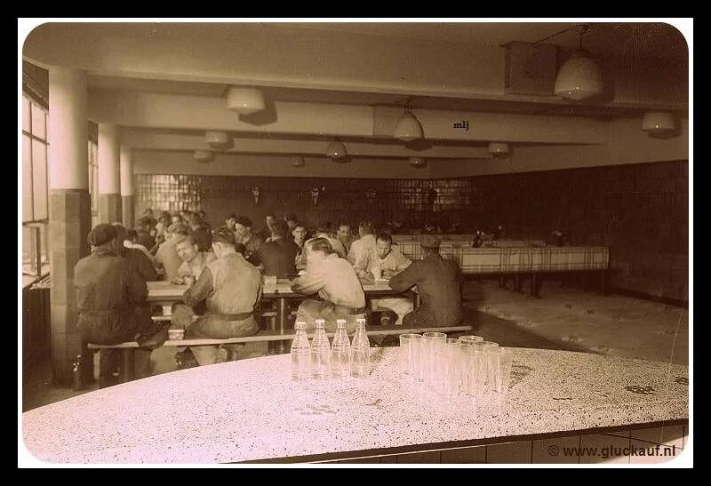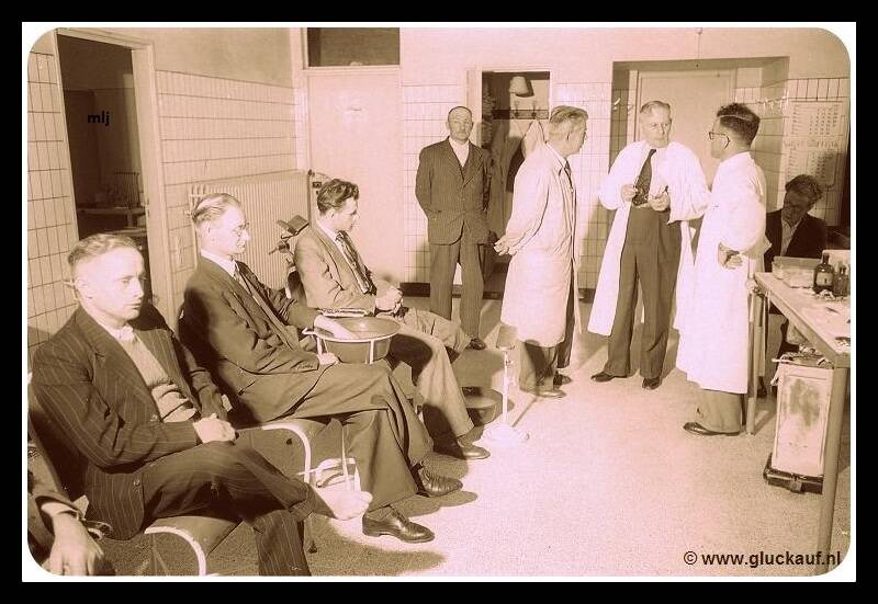 Portiers van de Oranje Nassau Mijn 1. Je ziet duidelijk de penningenborden van de middagdienst. Uit 1952.