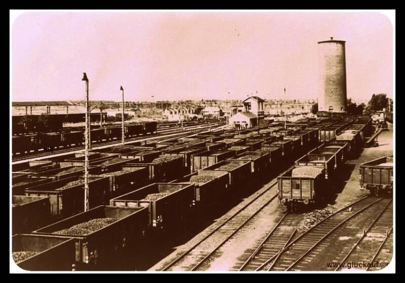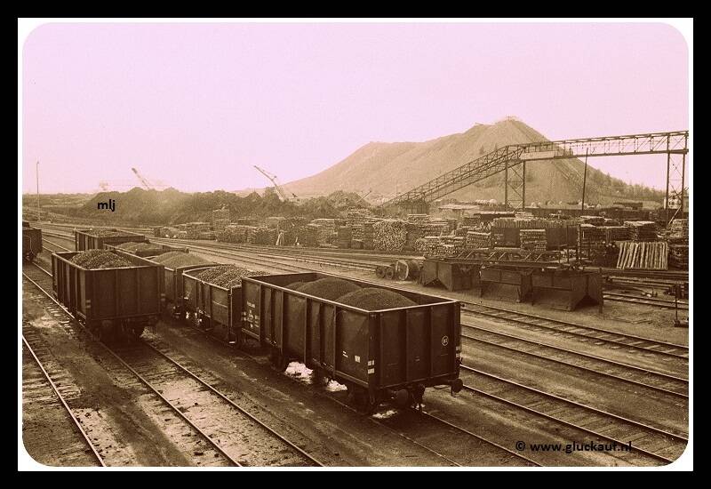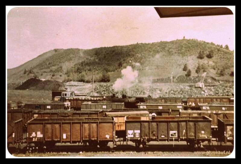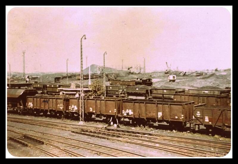 Rangeerterrein - spoorwegemplacement van de O.N.1. Met de steenberg van de O.N.1. Foto is genomen in 1952-1953.
