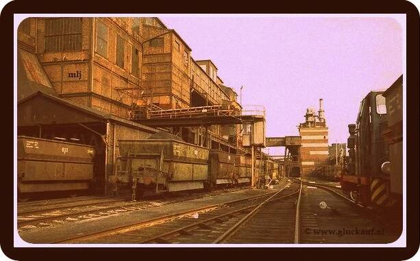 Links de wasserij, achter schacht 3, rechts wasserij en zeverij. O.N. 1