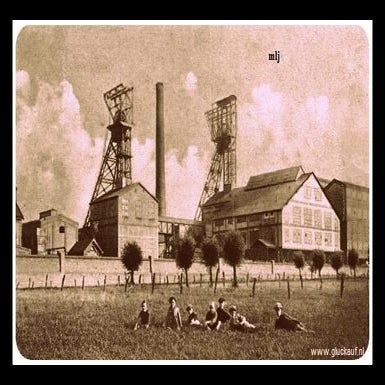 Fotokaart van de Oranje Nassau mijn met de twee schachten. In de jaren 60. © gebr.Simons./www.gluckauf.nl