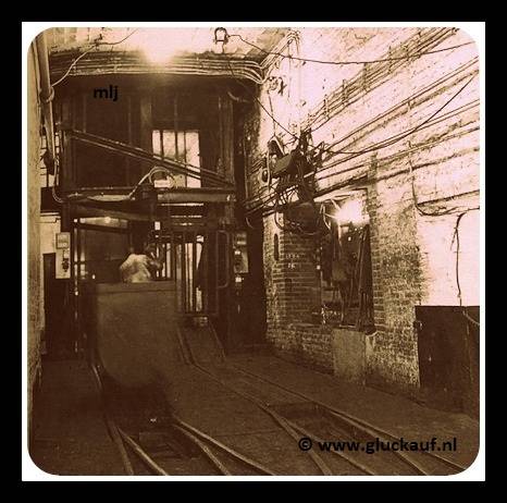 Schacht 1 op 485 meter verdieping. De seingever is bezig op de kolenwagons gevuld met kolen naar boven te sturen. Deze staan in de rails aan de achterkant van de schacht gedeeltelijk in de tractie kettingbaan. Deze laad de kolenwagons op de bodem in de kooi lopen, waarbij meestal tegelijk in lege wagen uit de kooi wordt gedrukt, om in de mijn weer gevuld te worden met kolen.