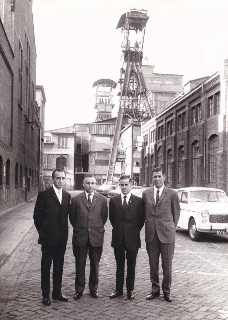 Hieronder een foto van de Staatsmijn Emma uit 1970 van Zef Dörenberg, schoonvader van Frans Cals. Zef had 25 dienstjaren en was seingever, eerst op de Stm. Hendrik, later op de Stm Emma. Op de foto van links naar recht Hein Strijdhagen telefonist, Zef Dörenberg seingever, .......Tilmans en 4de man onbekend. Tilmans was houwer zowel op de Hendrik als op de Emma. En strijdhagen was telefonist vervoerregelaarook op de Hendrik als op de Emma. Frans, bedankt voor het mogen gebruiken van de foto.
