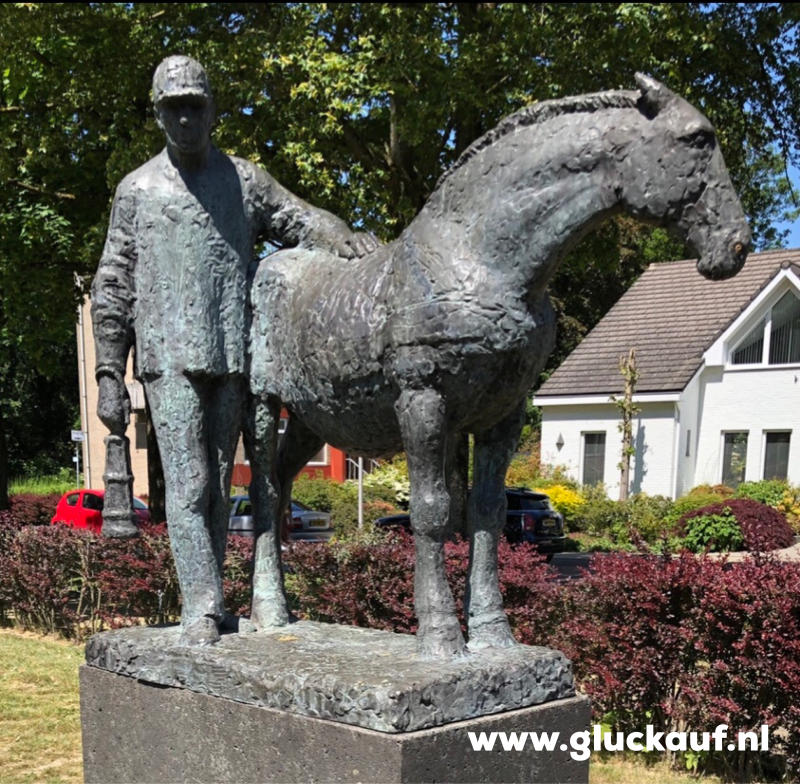 Prachtig bronzen beeld van een mijnwerker met mijnpaard. Dit beeld staat voor Zorgcentrum Hoog Anstel te Kerkrade.