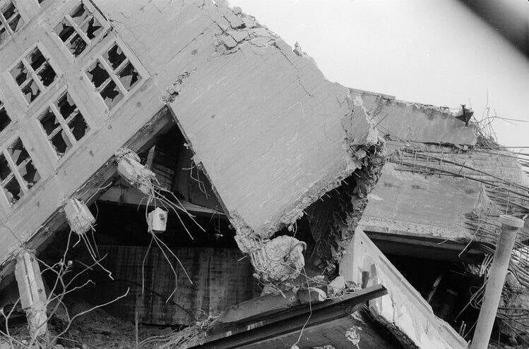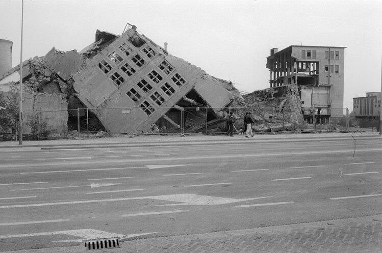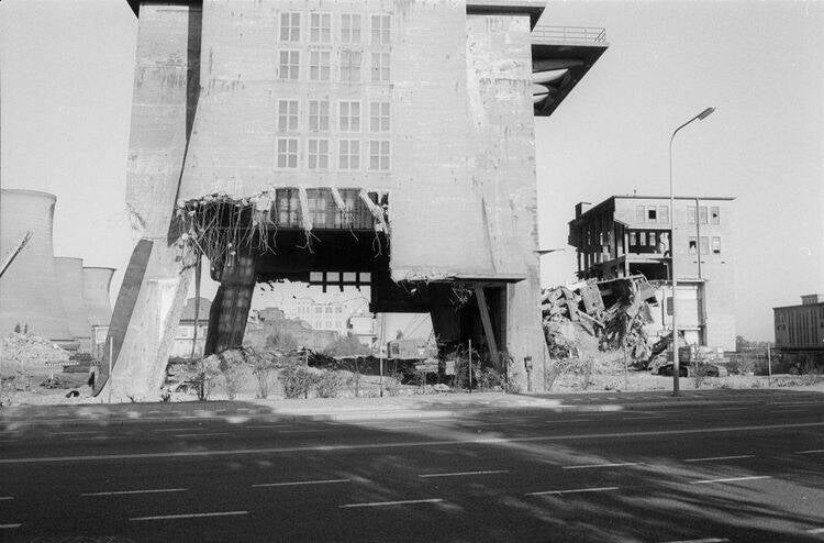 Hieronder ziet U twee foto's uit de jaren zeventig van de Oranje Nassau Mijn I te Heerlen tijdens de sloop van de mijn.