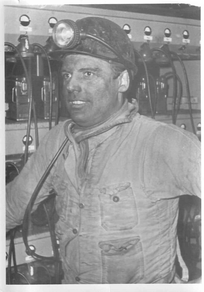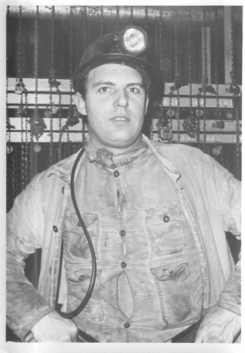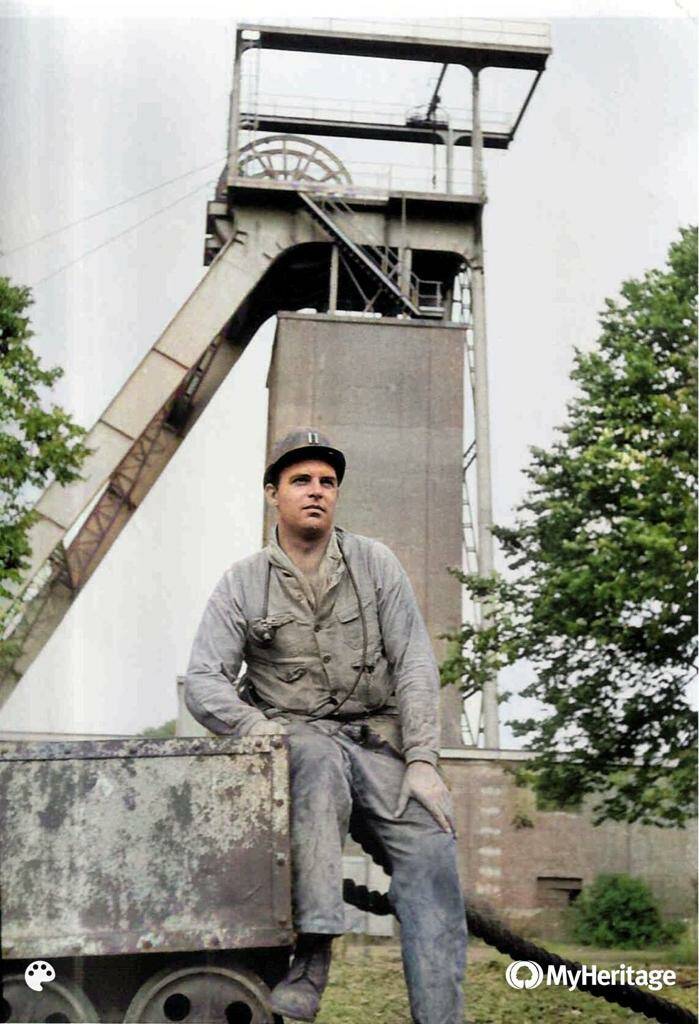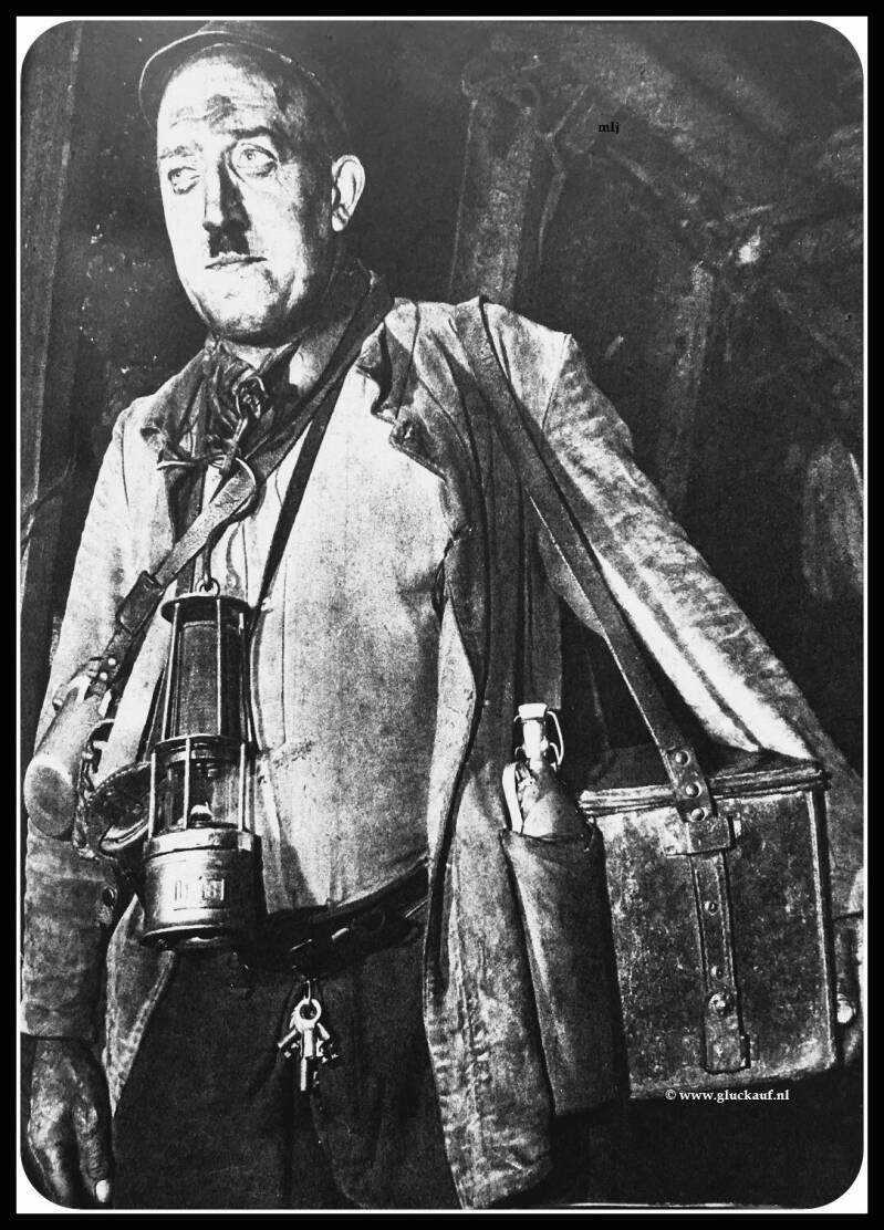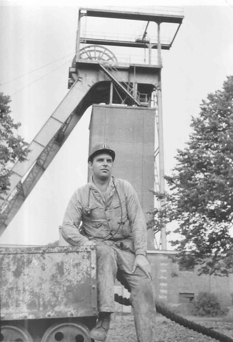 Hieronder een foto van elektriciën Hubert Meijers. Hij was werkzaam op de Domaniale Mijn te Kerkrade. Op de achtergrond zien we Schacht Beerenbosch.