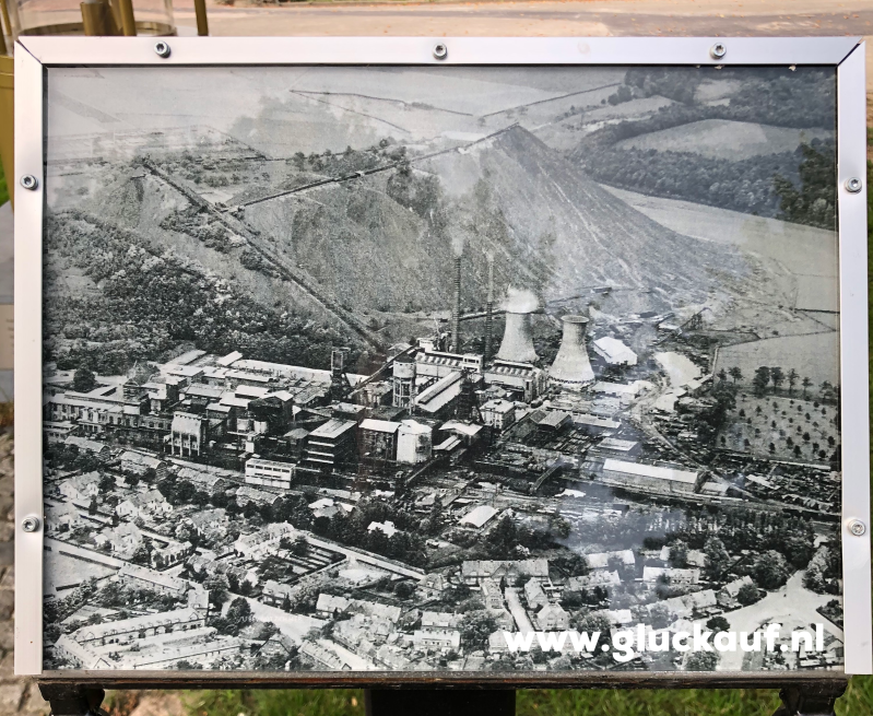 Hieronder 2 luchtopnames van de Staatsmijn Wilhelmina. Op de eerste foto is de mijn nog in bedrijf. Op de tweede foto is te zien dat het merendeel van de mijn al gesloopt is.
