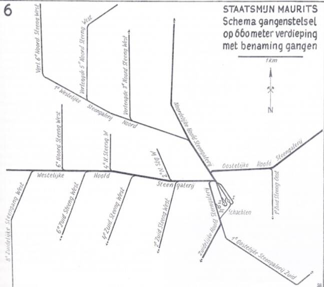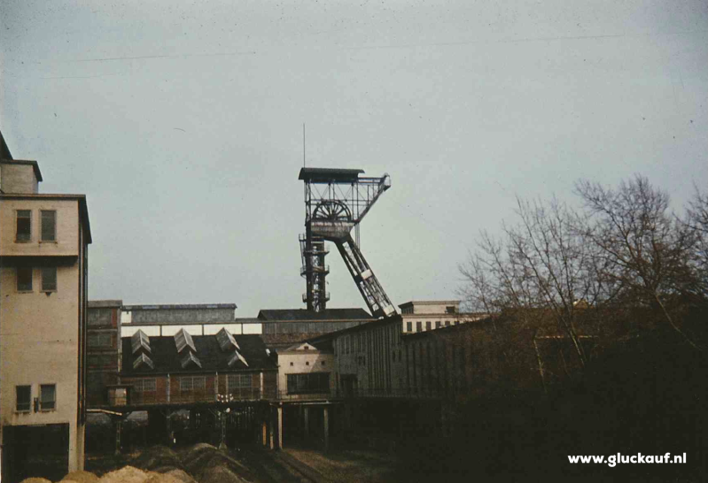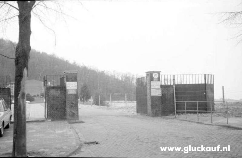 Hieronder 2 foto's van de ingang van de Staatsmijn Wilhelmina. De eerste foto toont de ingang toen de mijn nog in gebruik was. De tweede foto toont de ingang nadat de mijn al grotendeels gesloopt was.