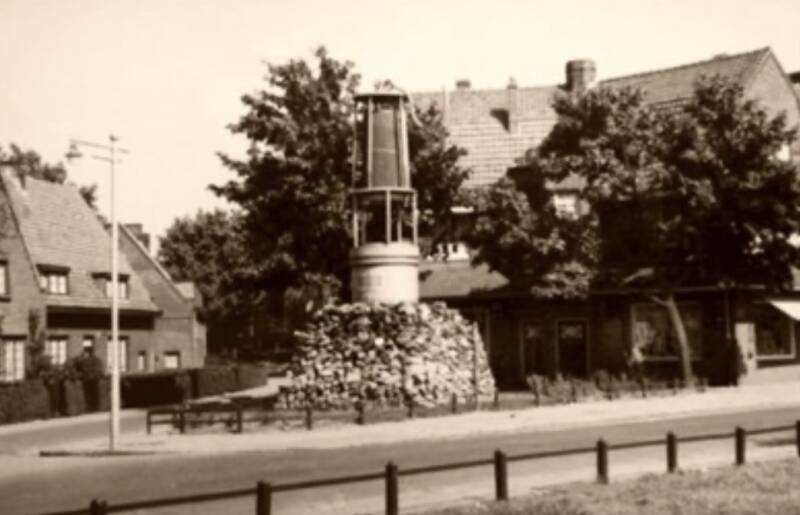 Hieronder een oude foto van de oorspronkelijke mijnlamp uit 1952 en foto's van de nieuwe mijnlamp zoals hij er nu staat.