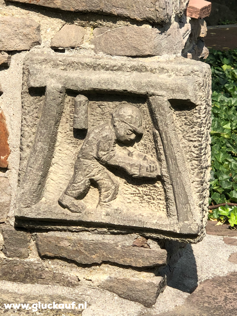 Het is een replica van een monument dat in 1952 werd geplaatst bij het 50 jarig bestaan van de Staatsmijnen. Het monument verdween toen al na een paar maanden. Waar het is gebleven is altijd een raadsel gebleven.