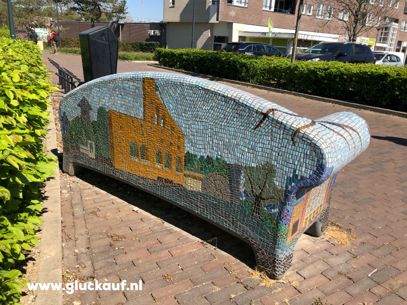 Hieronder een afbeelding van een Delfts blauw gedenkbord van Schacht Nulland van de Domaniale Mijn te Kerkrade.