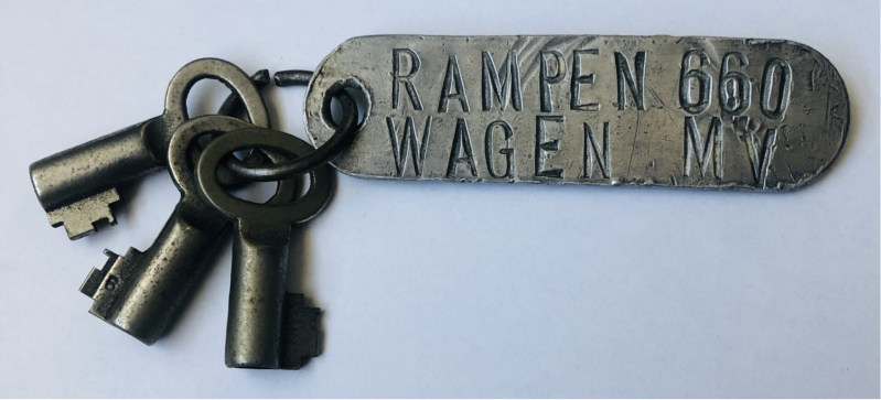 Onderstaande foto is de sleutelbos van de Rampenwagen op de 660-meter verdieping van de Staatsmijn Maurits.
