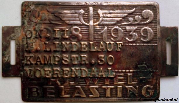 Fietsplaatje uit 1938. Van de heer J. Claessens, die werkzwaam was op de Mijn ON 2.