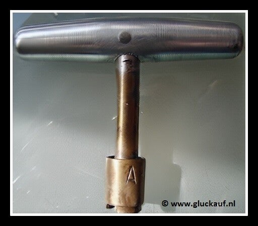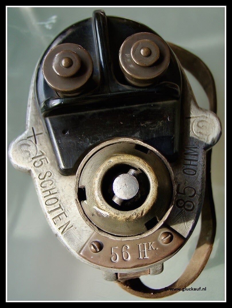 Schietapparaat van de Oranje Nassau Mijn 1. Deze is vrij uniek omdat dit apparaat twee zogenaamde opdraai handvaten heeft.