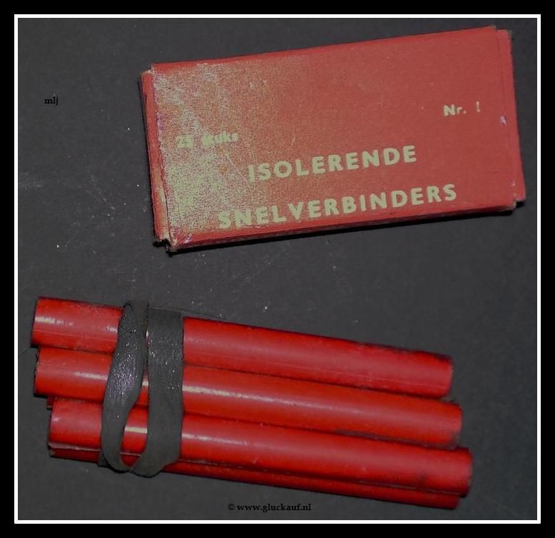 Hieronder vindt U diverse foto's van materiaal die een schietmeester nodig had om zijn werk te kunnen doen zoals schietapparaten, dynamietstaven, dynamietpinnen, schietkabel, schietkist, waterpatroon, schietpenning en ohm-meters.