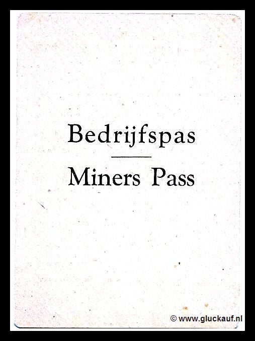 Hieronder vindt U foto's van bedrijfspassen en legitimatie die de mijnwerkers nodig hadden. Tevens zijn we ook in bezit van bedrijfspassen die men nodig hadden om zich in en vlak na de 2e wereldoorlog en de jaren daarna en te voren te kunnen legitimeren en om aan te tonen dat men zich op een bepaald tijdstip in de buitenlucht mocht vertonen om op het werk te komen of om naar huis te gaan.