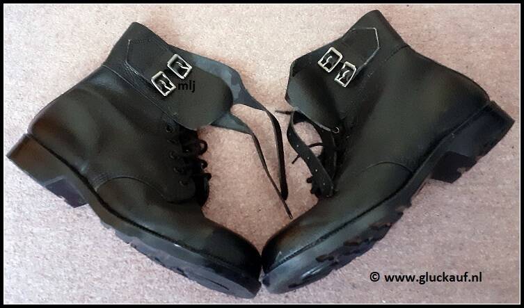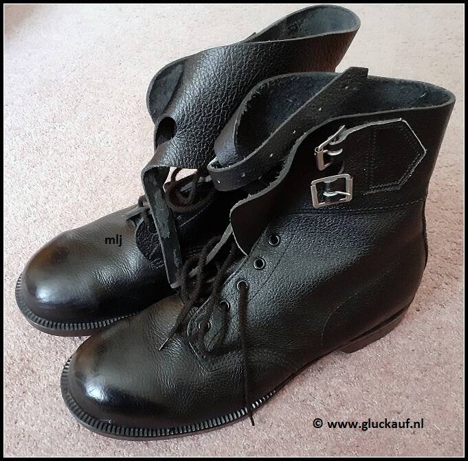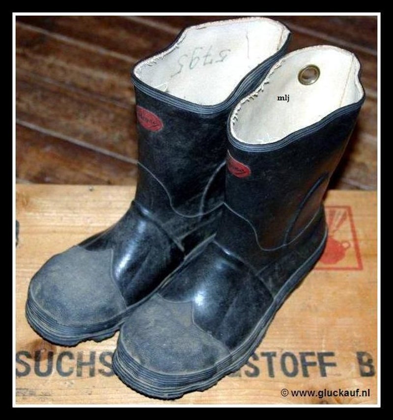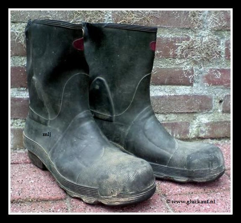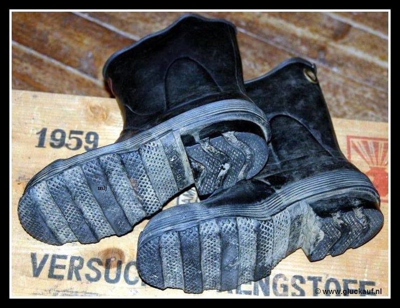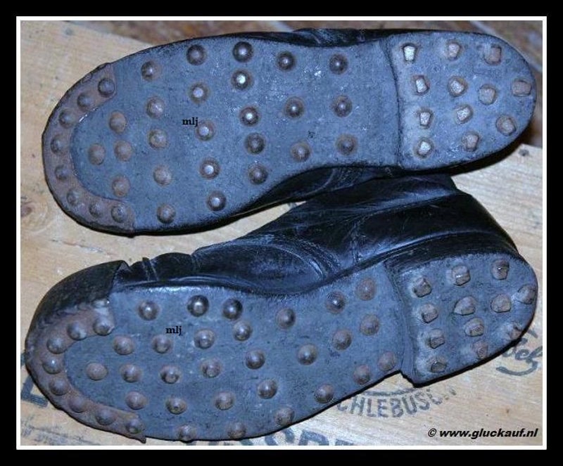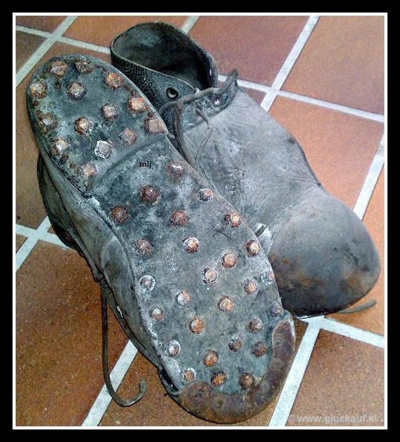 Mijnwerkersschoenen. Op de zool van Mijnwerkers schoenen, zie je duidelijk FSI staan, dit staat voor Fonds Sociale Instellingen.