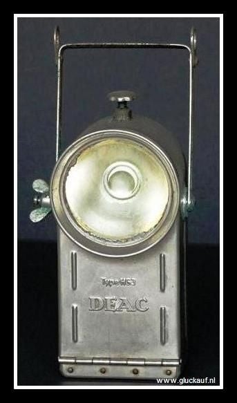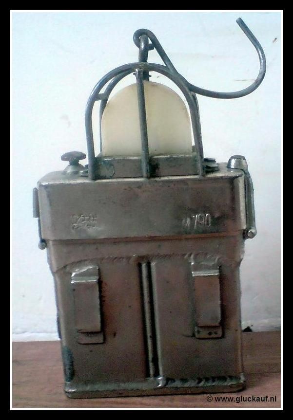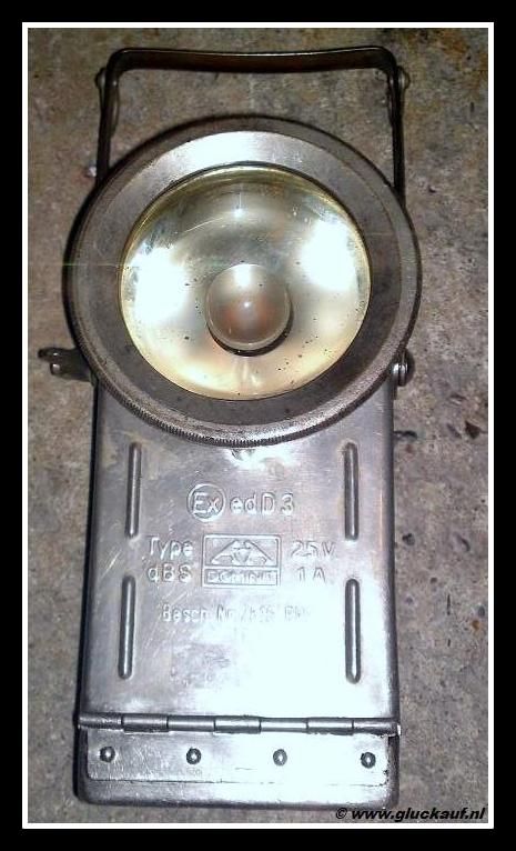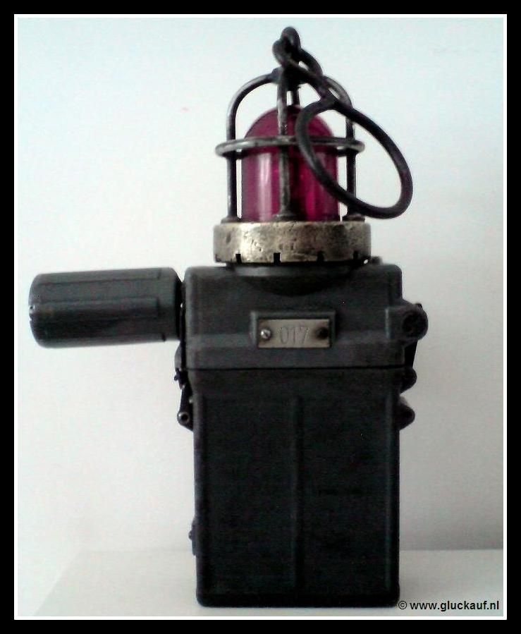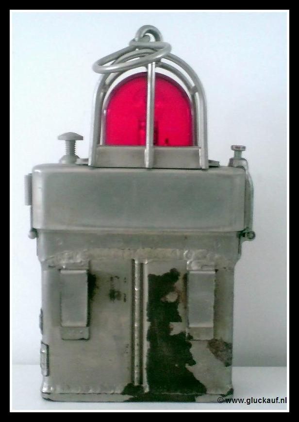 Info: NC-accu 2,6 V. Magneetsluiting. Het is een seinlamp. Deze lampen werden gebruikt op de Staatsmijnen.