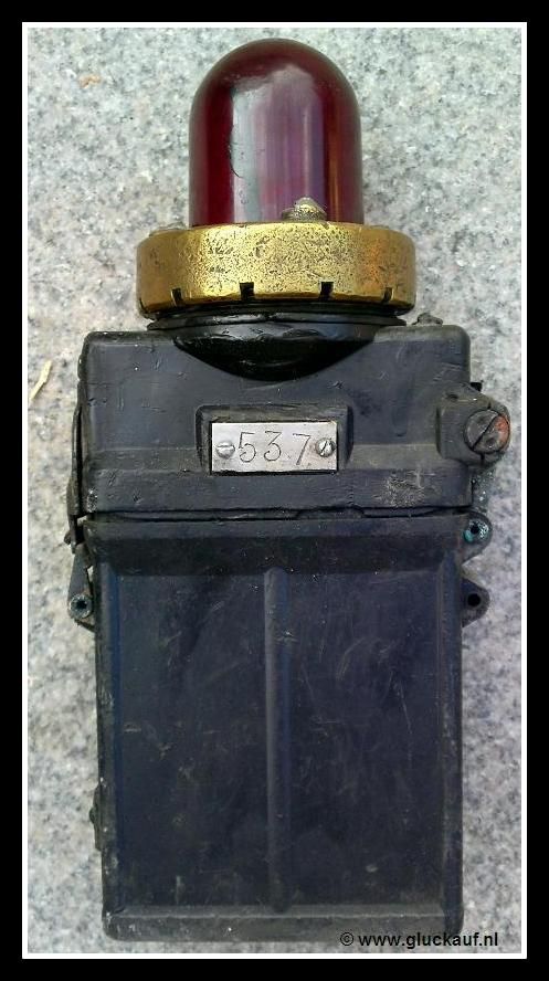 Info: NC-accu 2,6 V. Aan en uit door aan de draai knop te draaien. Deze werden aan ondergrondse treinen of wagons gehangen.