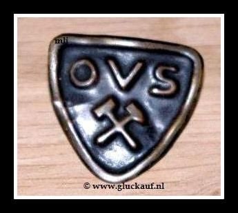 Embleem van de O.V.S. opleiding, deze is van metaal en zat op een mijnwerkers helm van de leerlingen van de OVSers.