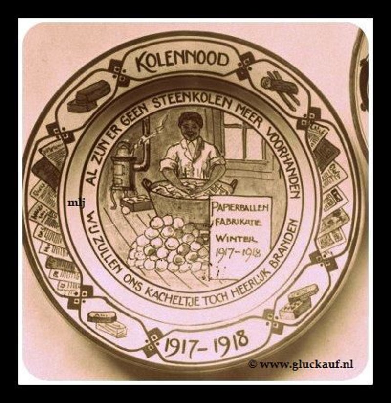 Herdenkingsbord over de kolennood en het gebruik van papierballen in de winter van 1917-1918.
