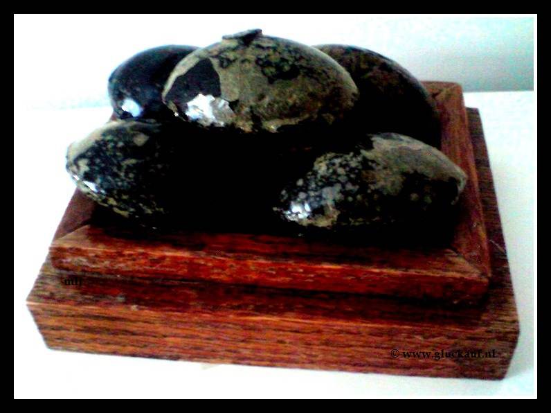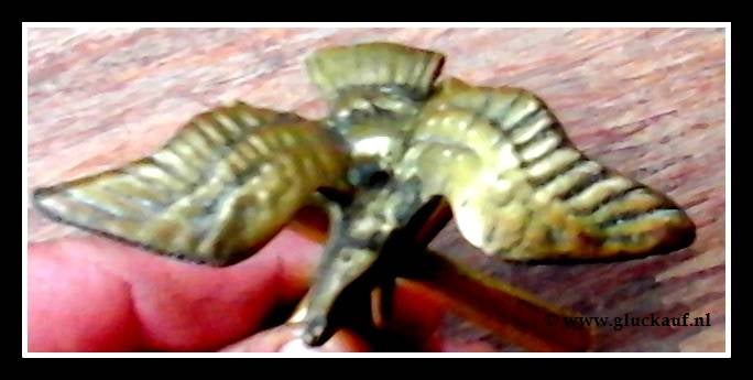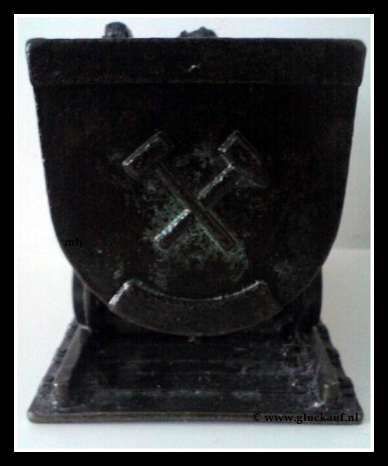 Waarschijnlijk een onderdeel van een asbak gemaakt van messing. De meesten mijnwerkers deden aan duivensport. © L. van den Hooren/ www.gluckauf.nl