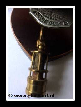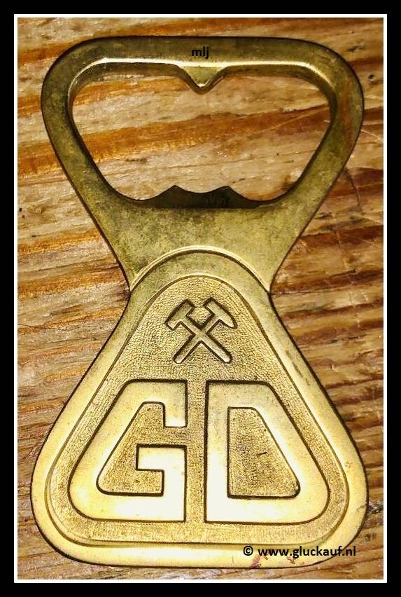 Flessen opener. Met het logo van fabrikant G. Dusterloh. Deze fabrikant maakte o.a. rooflieren ( zie foto ) voor ondergronds. Maar ook promotiematerialen en relatiegeschenken. © www.gluckauf.nl