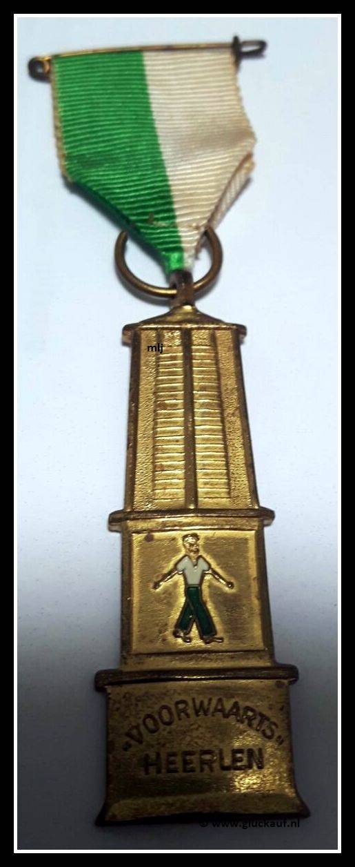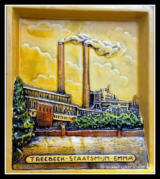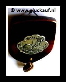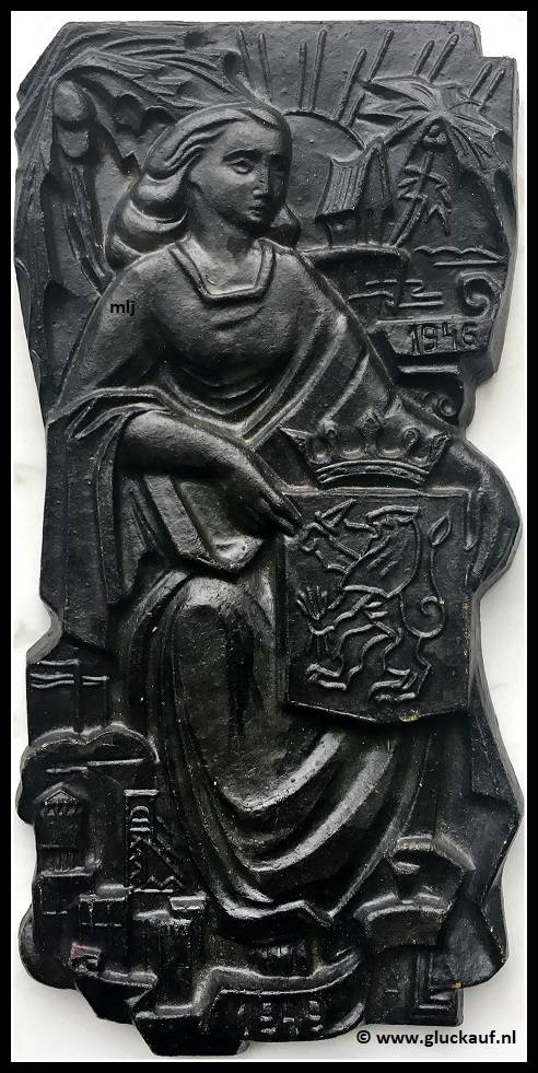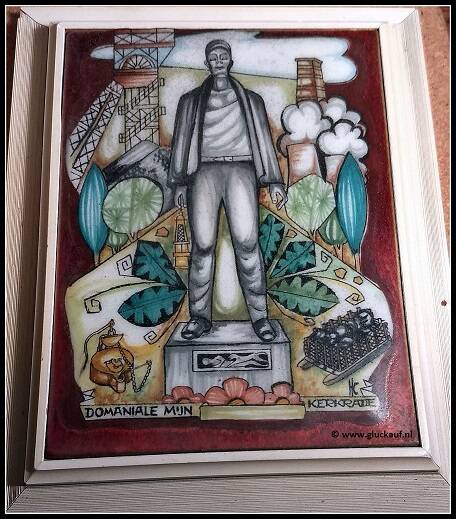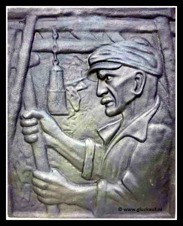 Metaal afbeelding, van de voormalige Domaniale Mijn. Deze plaatjes werden uit gegeven om op wandelstokken te bevestige.