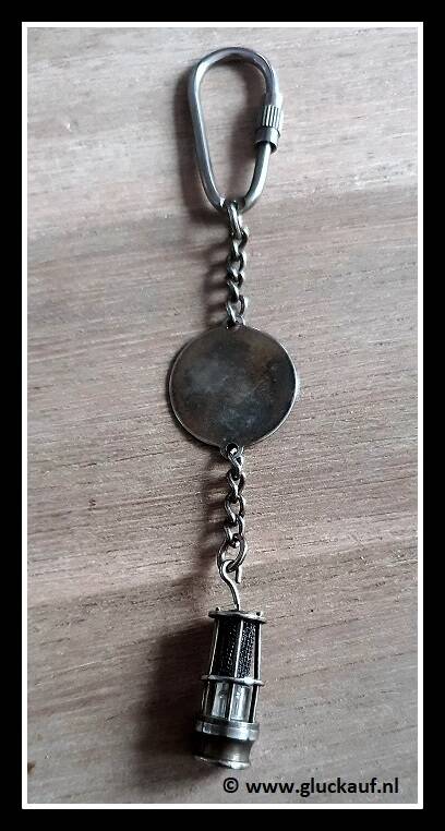Mini Mijnwerkers lampje. Uit gegeven door de Mijn Willem-Sophia, als sleutelhanger.