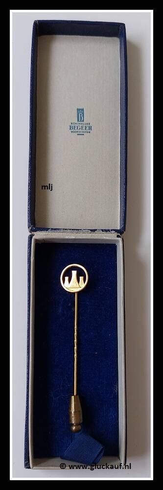 Broche van de Oranje Nassau Mijn 1, je ziet onder andere de koeltorens, de Lange Lies en de Lange Jan.