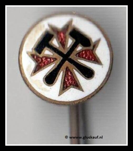 Speldje van de Staatsmijnen die werd afgegeven aan OVS'ers na afloop van hun zomerkamp in Vaalsbroek.