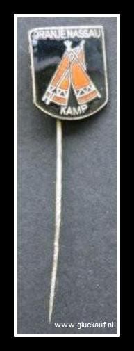 Speldje van de Oranje Nassau Mijn , uitgegeven aan OVS"ers van de O.N. Mijnen, ter gelegenheid van een Kamp.
