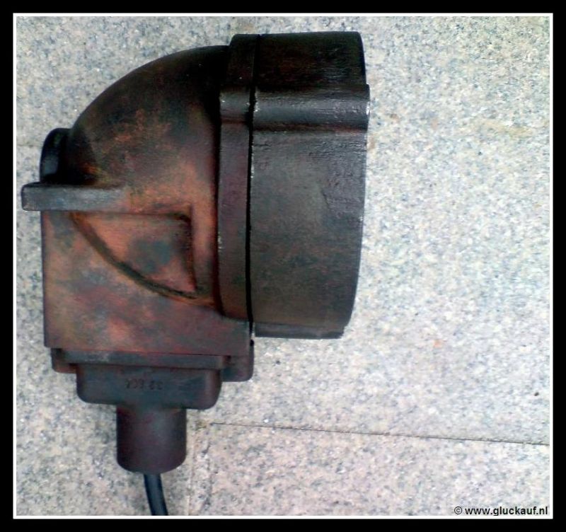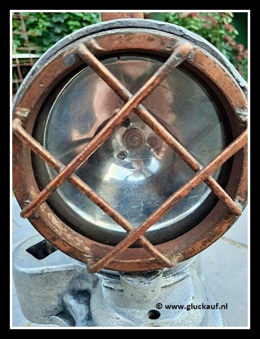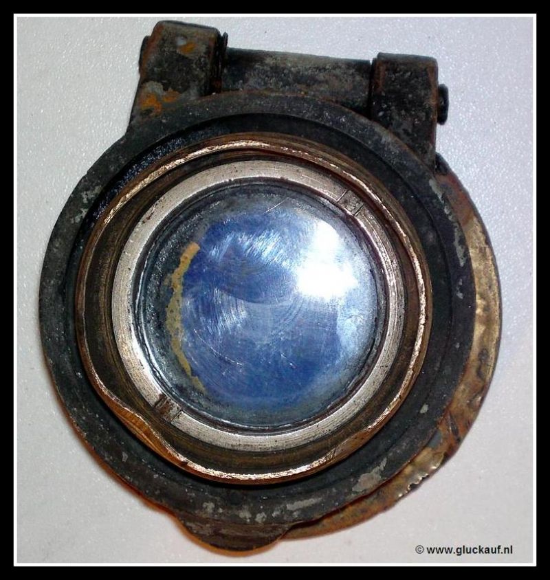 Onderdeel van een ondergrondse locomotief. Deze bevondt zich bij de machinist. Er zit een blauw & en een wit glaasje in. Zover als wij weten had dit te maken als men personeel vervoerde. Afkomstig van de ON Mijn.