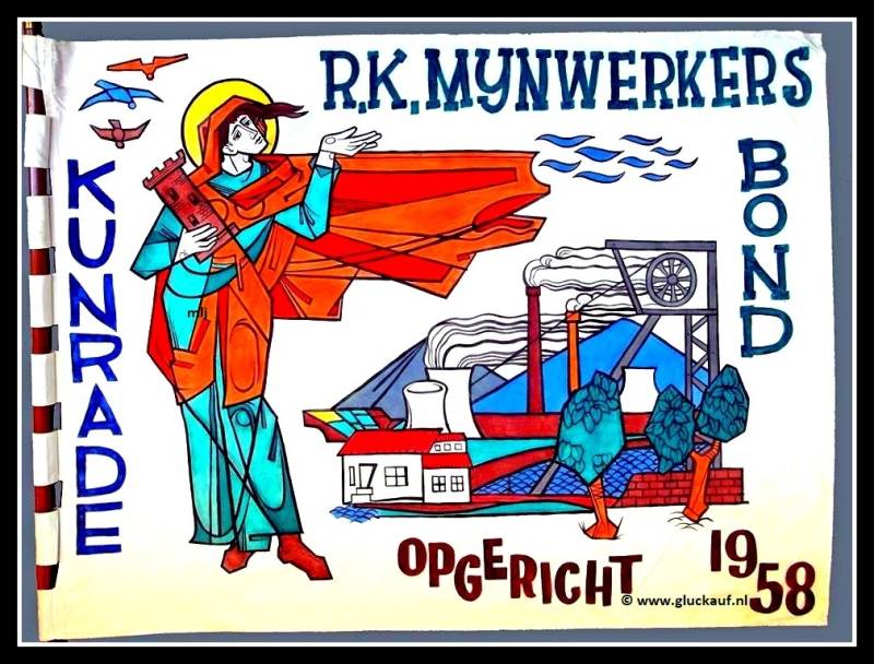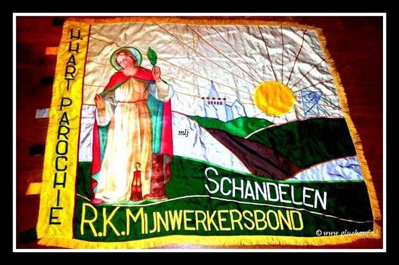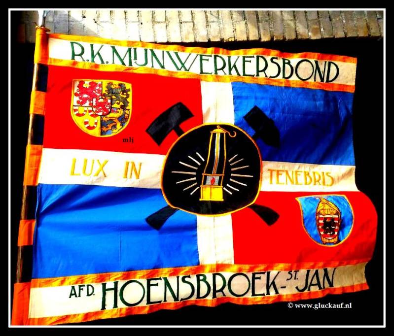 Zeer unieke vlag met de originele vaandelstok van de R.K. Mijnwerkersbond afd. Hoensbroek. © www.gluckauf.nl