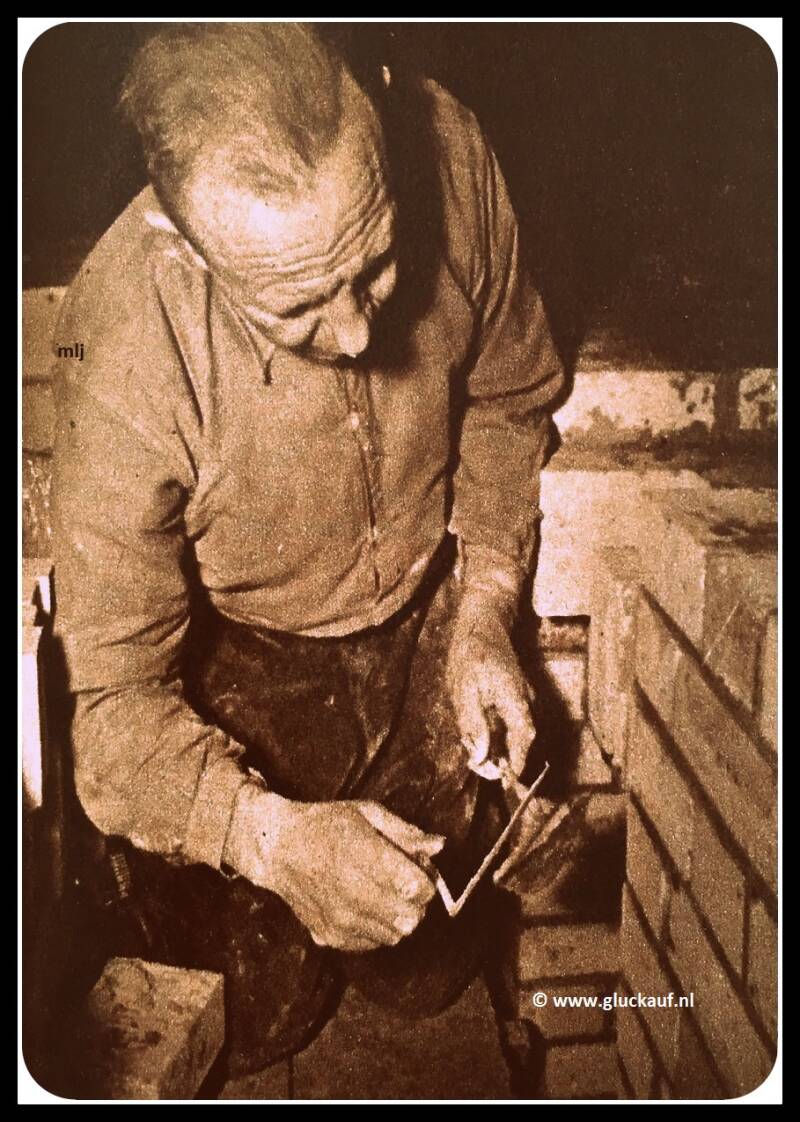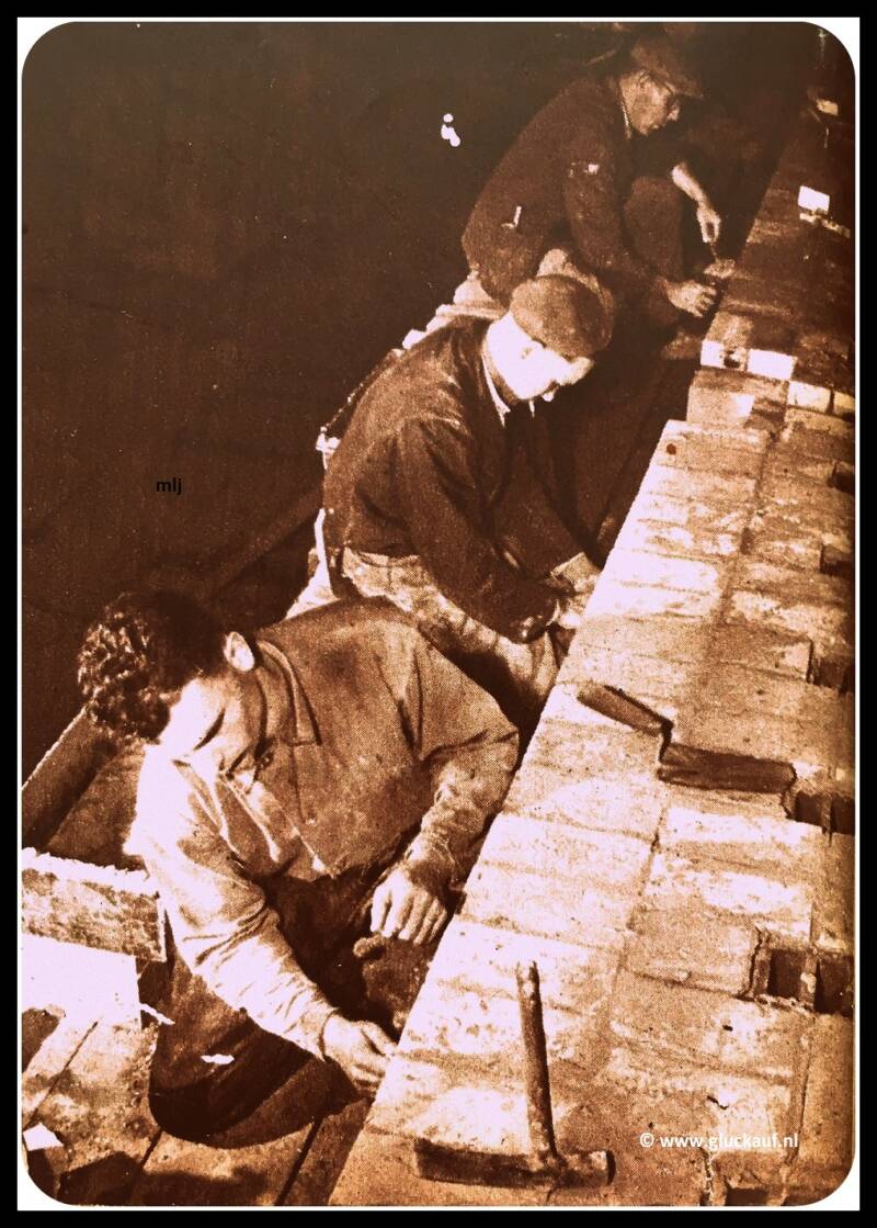 De metselaars haver, Brandjes en v.d Linden metselen de kop muur cokesfabriek Maurits uit 1948.