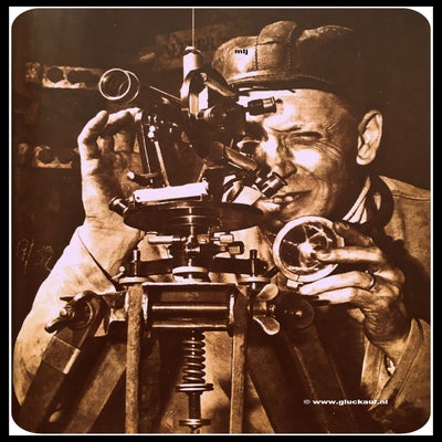 Hoe is deze steengangen gelegen tenopzichte van Nieuwe Amsterdams Peil.De waterpas zal het uitwijzen.Tevens wordt hier de helling van het spoor gecontroleerd.© Cals/www.gluckauf.nl